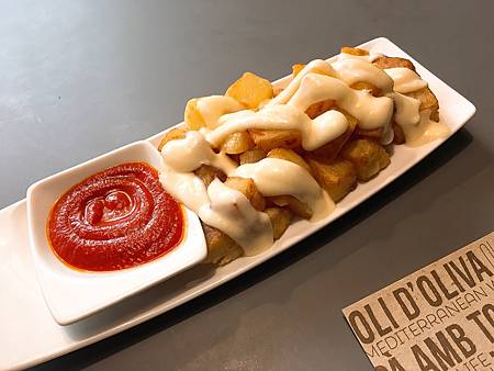 ✔︎Patatas Bravas 辣味炸馬鈴薯:馬鈴薯炸得好嫩好香、Brava醬好夠味,連一向不愛吃馬鈴薯的我都愛上這道Tapa了!胡老爸還想買Brava醬回台灣!