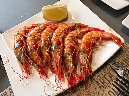 ✔︎Gambitas Rojas a la Plancha 煎紅蝦:非常貴的紅蝦,不多說,一定要點!等了一會才上桌,可是等待是值得的,又甜又嫩啊!給非常愛吃蝦的胡老爸過了蝦癮!