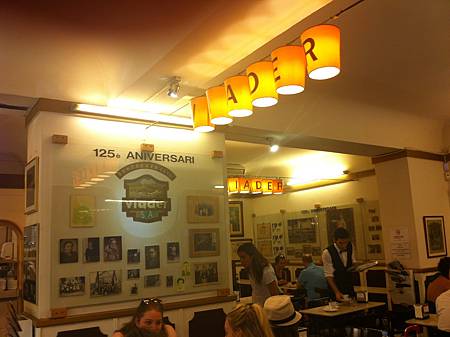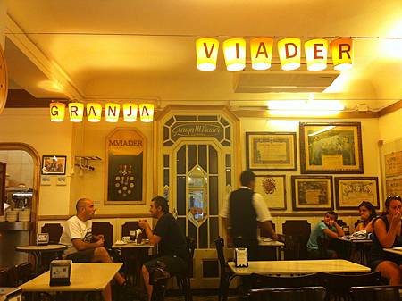 之前阿卡就跟我說過,老巴塞隆納人(譬如卡媽)都去Granja吃早餐。Granja是西班牙文農場的意思,賣的東西當然就是各類乳製品啦!而根據官方導遊:Granja Viader從1870年就開始營業,本來只是賣牛奶的小店,但他家不像其他Granja把乳牛養在店後方,而是在城外經營牧場、把新鮮牛奶運進城,再自己加工製作乳製品。