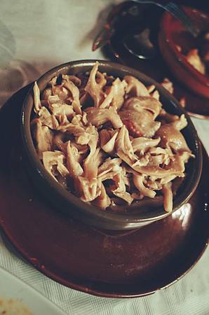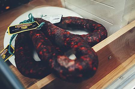有來過西班牙的人對Chorizo一定不陌生,它的特色就在於那香豔濃郁的紅椒味,或甜或辣,端看加入的是甜的或辣的Pimentón(紅椒粉);有可冷食切薄片生吃的,也有用來料理為熱食的;後者甚至是西班牙各地區燉菜、燉豆、雜燴鍋料理不可或缺的重點食材,可說是西班牙用途最廣泛的臘肉了!我沿路吃到的Chorizo都是辣的,剛好滿足我這嗜辣人!
