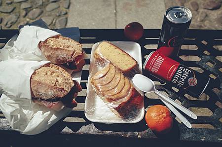 在美麗山谷小鎮Molinaseca的午餐:從鎮上唯一一家迷你超市(其實是雜貨店來著),買了老闆現做的Cecina三明治。(同場加映超好吃的蘋果蛋糕,以及盛行於西班牙西北部的Estrella Galicia啤酒。)