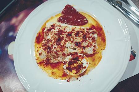 Mencía紅酒燉成的醬汁太美味了,豬頰肉吃起來入口即化,我忍不住給了阿卡一個吃,想看他表情,結果他也徹底融化!(這麼好吃我還捨得給他,可見是真愛!)