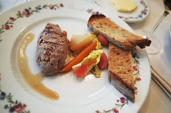 左下角可以看到開胃菜乳酪奶油酥球,話說吃到了主菜我們還沒把開胃菜吃完是怎樣......印象中侍者很大方地在我們吃完時補了幾顆給我們,但接著上正餐後,我們就再也沒有胃可以吃下它了......