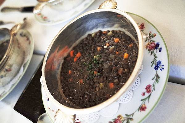 與豬肉搭配的一碗小扁豆,看來不起眼,但是榮登阿卡「今日我最愛」!