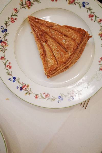 適逢佳節,同桌夥伴的甜點是天主教主顯節 / 東方三王節(1月6日)前後,法國北部會吃的國王蛋糕Galette des Rois — 千層派與Frangipane杏仁甜內餡。(法國南部吃的國王蛋糕則跟西班牙一樣,走比較粗獷的路線。)