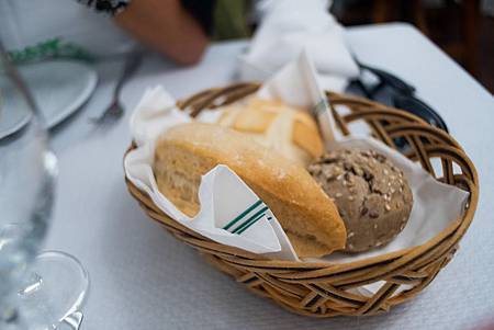 在西班牙上館子,麵包是不能少的,幾乎一定上桌,而且會酌收一點費用!就算你不吃,也請不要當奧客要求退麵包錢喔!