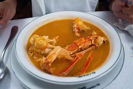 由於是漁夫手工捕捉的,而且產量不高,一人份的龍蝦煲要價69€;可以點一人份兩人共享,這樣要價82€,而且由於風味真的很紮實,其實這樣就很夠吃了。